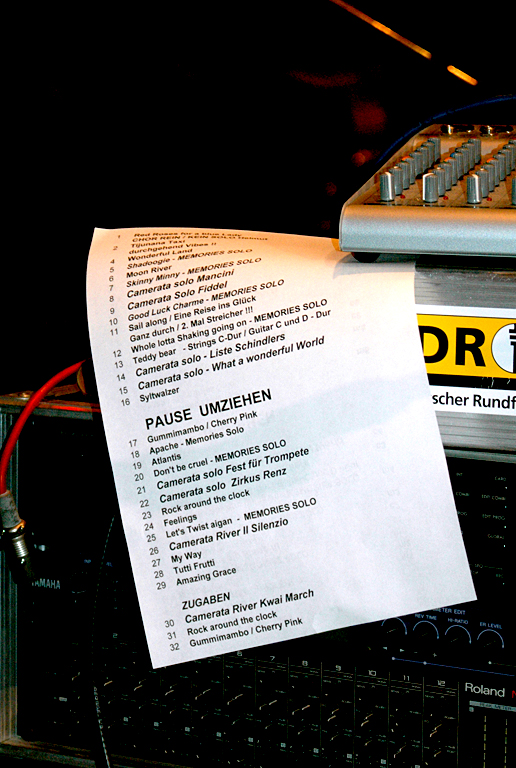 Unser Programm umfasste mit Melodien, die Musikgeschichte geschrieben haben. Dazu gehören solche „Millionsellers“ wie ‚My Way’ von Frank Sinatra, ‚Wonderful Land’ von den Shadows, ‚Feelins’ von Morice Albert oder ‚Rock around the clock’ von Bill Haley. Wie im Original, erklingen die Titel mit toller Streicherbegleitung. Das ist musikalischer Hochgenuss pur! Ausserdem hatten wir bei den Konzerten einige musikalische Überraschungen parat! So wurde wir u.a. der Rock’n Roll-Klassiker "Let me be your Teddybear" von King Elvis in einer klassischen und dann als fetzige Rock’n Roll-Version dargeboten!