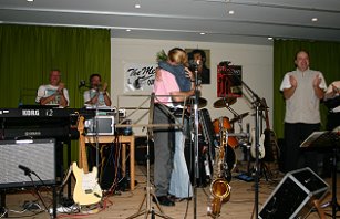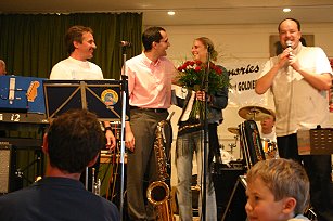 Tags darauf musste das Konzert aufgrund des schlechten Wetters in den Wenningstedter Kursaal verlegt werden. Auch hier begeisterten die Memories mit einem abwechslungsreichen Programm. Allerdings erlebten Gäste wie Musiker eine Besonderheit. Im Vorfeld hatte Jochen Link aus Baden-Baden die Memories gebeten, im Rahmen eines Konzertes seiner Freundin, die bereits seit dem 7. Lebensjahr ein Memoriesfan ist, einen Heiratsantrag machen zu dürfen. Die Memories waren sofort bereit und als Frontmann Alexander Schick im Konzert fragte, wer die Memories schon über 20 Jahre kenne, winkte die Schwester der Angebeten ganz heftig. Sie war als einzige eingeweiht. Die beiden 28jährigen Schwestern wurden zur Bühne gebeten, ohne dass die junge Frau etwas merkte. Die Memories scherzten und meinten: „Sonst ist das weibliche Fanpublikum 40 Jahre und älter, da muss man sich zwei so hübsche Frauen doch glatt auf die Bühne holen”. Die Schwestern stellten sich als Uschi und Angelika Schneider aus Bühl bei Baden-Baden vor und erhielten als Dankeschön für ihre lange Fantreue die neue Memories-CD „Traummelodien & Welthits”. Bevor die Schwestern die Bühne verlassen konnten, baten die Memories ihren neuen „Roadie" auf die Bühne, der beim Aufbau helfen würde. Jochen Linke kam mit einem Gitarrenkoffer und ein Aufschrei war von Freundin Angelika zu hören.